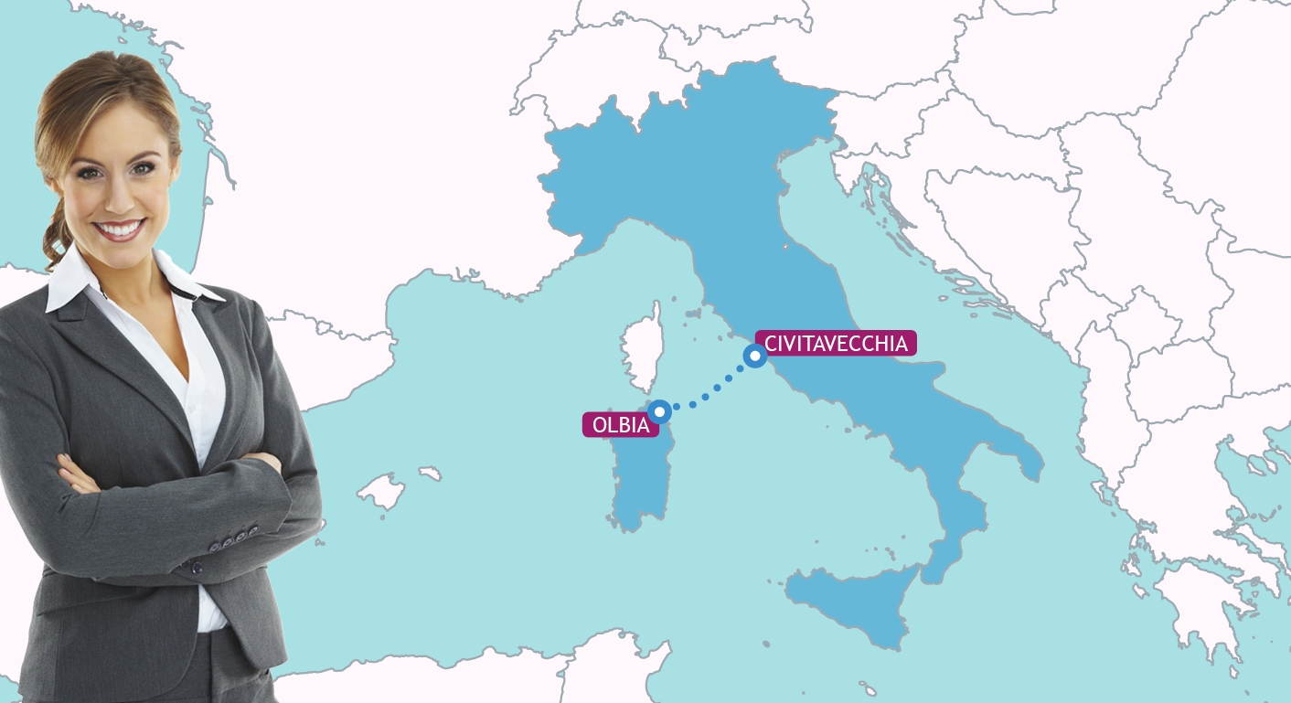La rotta Civitavecchia Olbia collega più volte a settimana il centro Italia al nord-est della Sardegna con navi e traghetti dotati di servizi confortevoli e fra i più veloci del Mediterraneo, che viaggiano a una velocità media di 30 nodi.