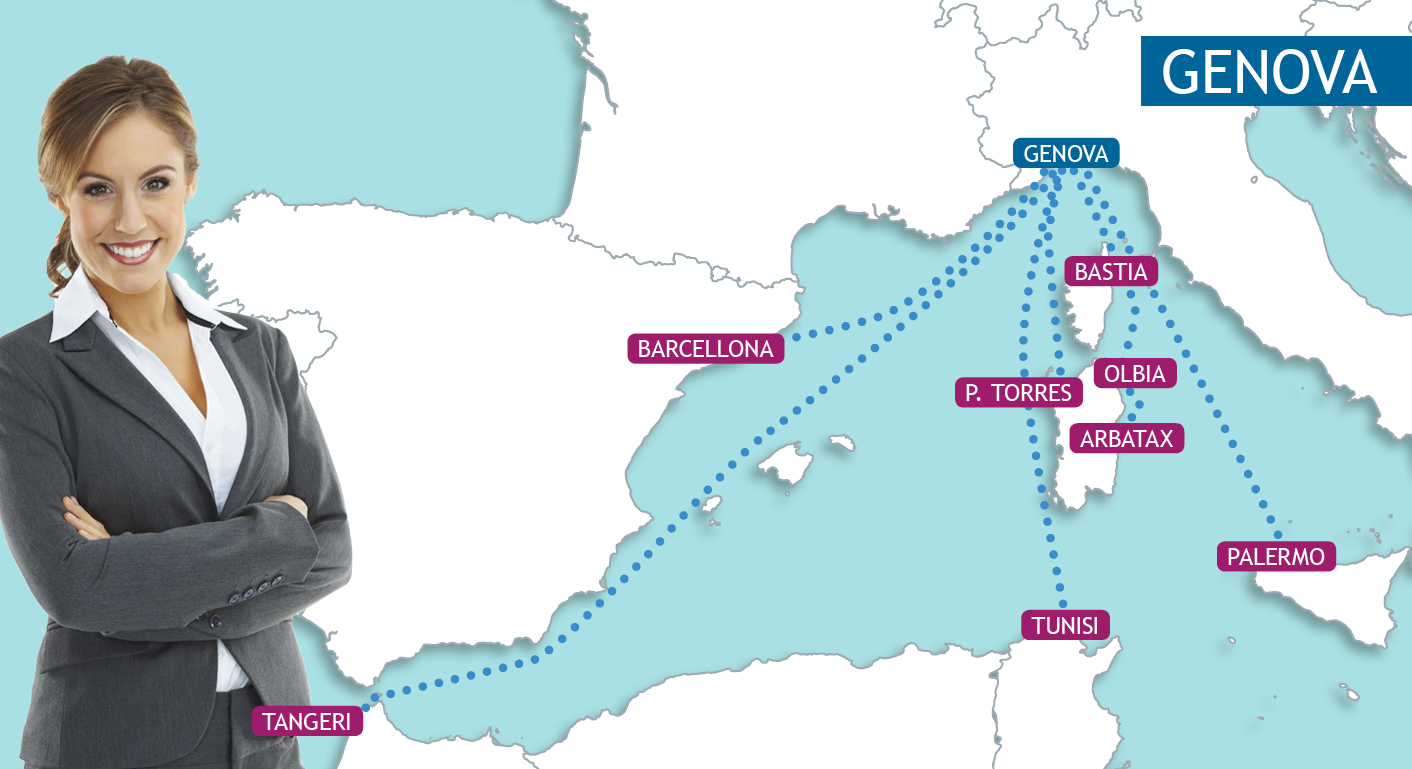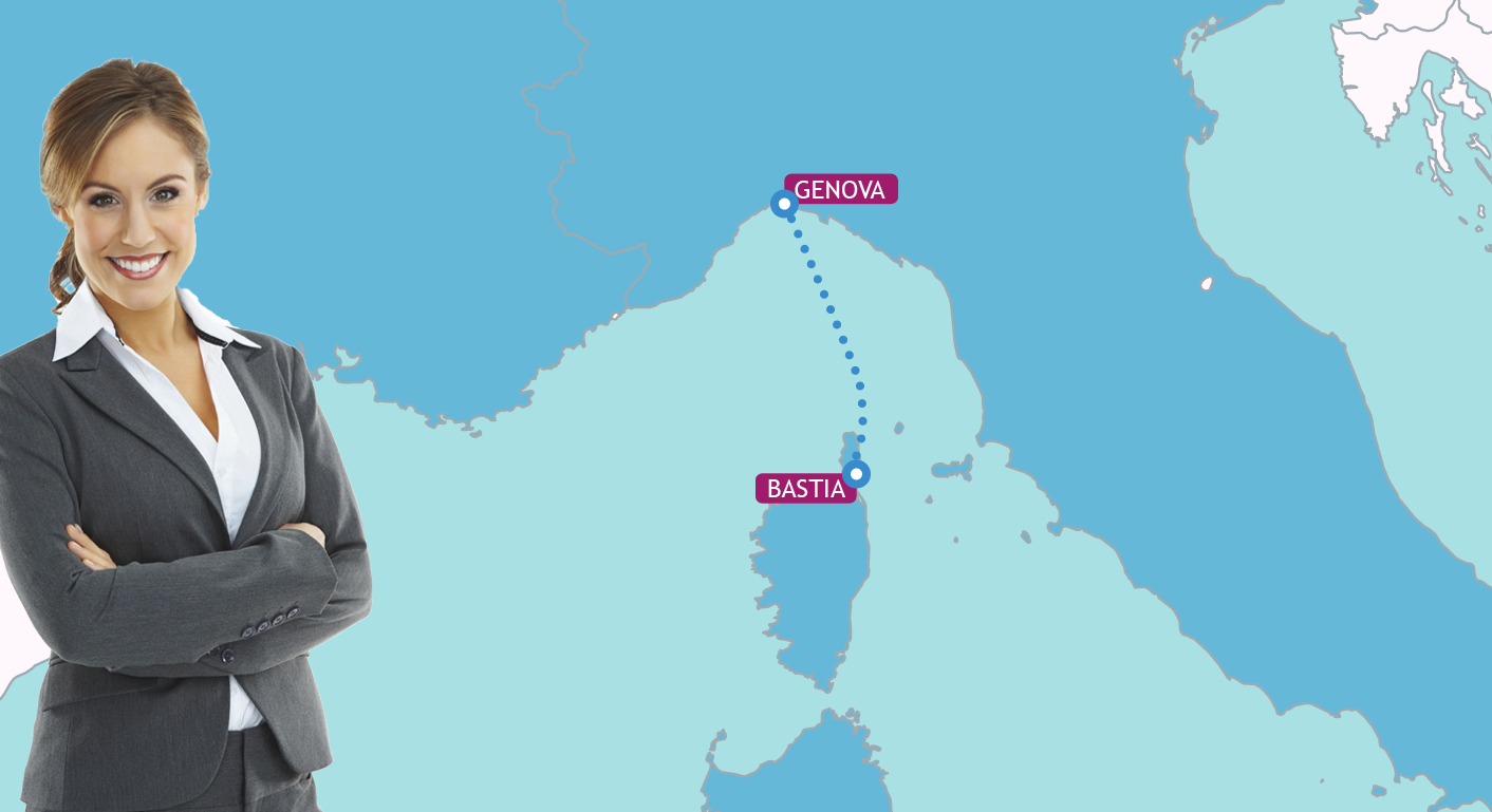 La tratta Genova Bastia collega diverse volte a settimana il porto di Genova in Liguria a quello di Bastia, nel nord della Corsica, con numerosi traghetti dotati di servizi confortevoli e fra i più veloci del Mediterraneo, che viaggiano a una velocità media di 30 nodi.